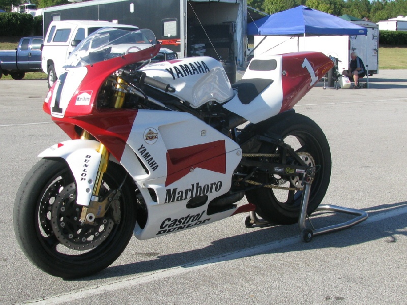 We built this bike to honour Wayne Rainey. “Wayne, we will never forget!” 1993 TZR250 3XV frame/swingarm, Ohlins suspension front/rear, heavily modified RZ500 motor by ATR, programmable ignition, Airtech YZR bodywork, many parts including, engine mounts, triple clamps, and clutch cover, CNC’d by ATR. Basically, everything we could think of. This is the strongest, most advanced, and yes, best YZR500 replica in the world today. PERIOD! Proof?? Placed 2nd in P4 Superbike at Shannonville race track June 2009 and 4th at the 25th two stroke gathering at Barber race track October 2010 in unlimited two stroke class. We travelled over 1000 miles, one way, and were top finishing 500cc both Saturday and Sunday.